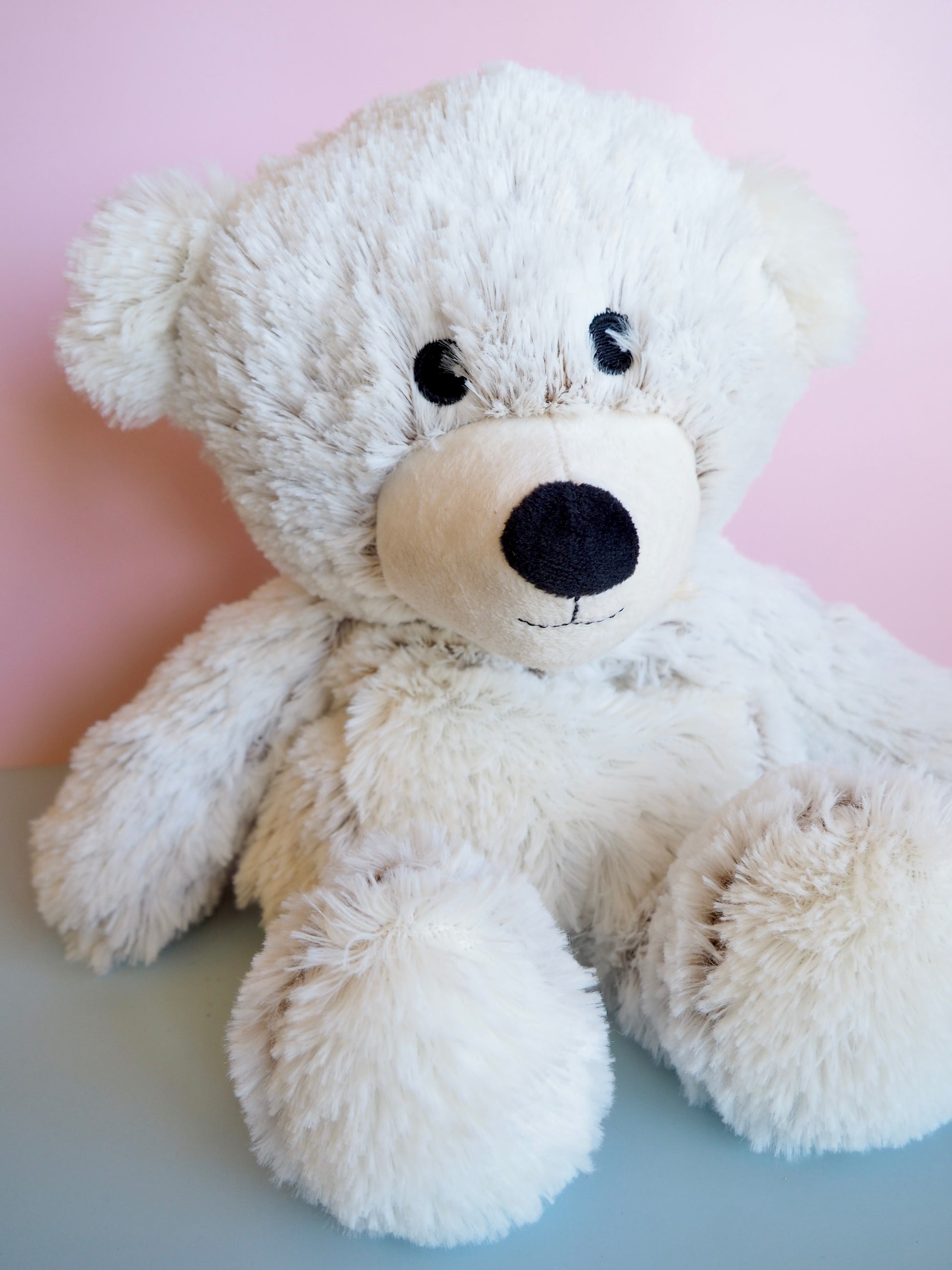 Stuffed bear from the brand Warmies! Super cute, can be warmed up in the microwave, and has a light lavender scent! Instructions on tag.